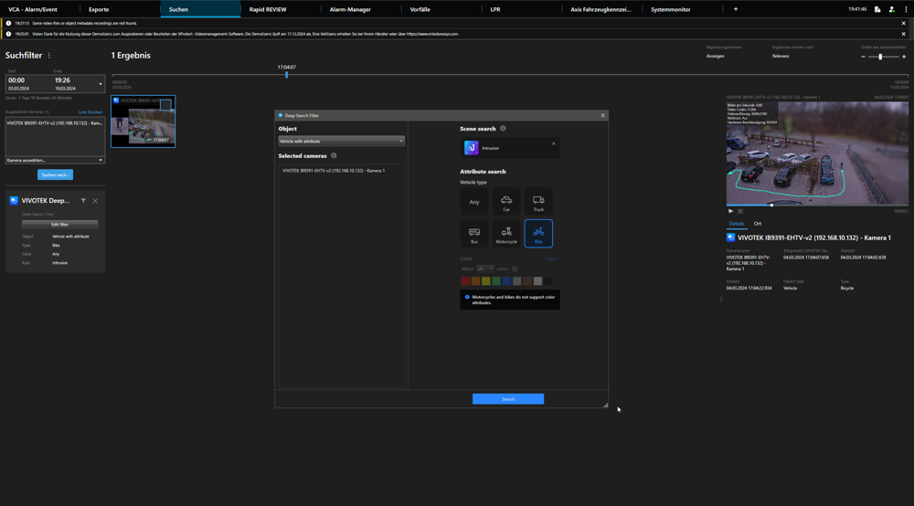 VIVOTEK Deep Search und VCA
